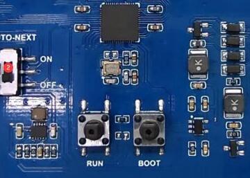 Press RUN, then press BOOT, then release RUN, then release BOOT, a USB flash drive will pop up on the computer, and you can drag the UF2 file into it.