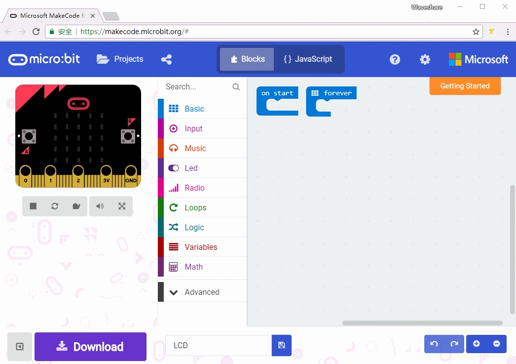 The official recommendation are two programming methods: typescript and micropython. Typescript is the graphical programming language.