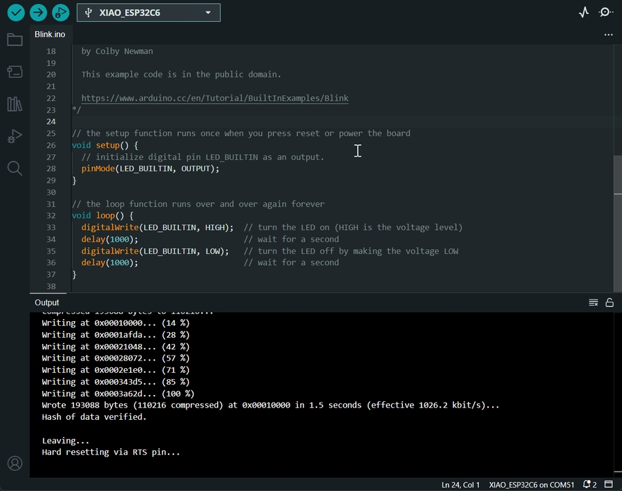 Step 3. Upload the Blink program to check the operation of the XIAO ESP32C6.