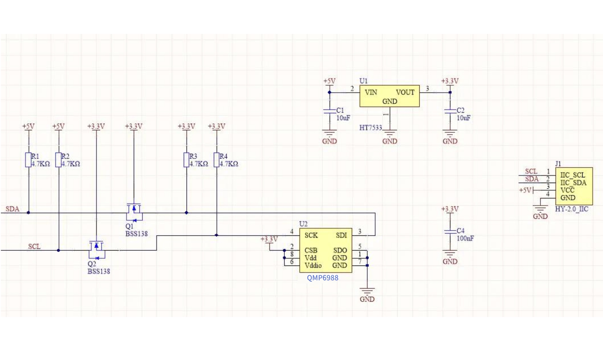 Barometric Pressure Unit is a barometer unit that uses QMP6988 barometric pressure sensor to measure atmospheric pressure and altitude estimation, with a relative accuracy of ±0.039hPa (±0.12hPa, equivalent to ±1m height difference), a wide measurement range, and an integrated temperature sensor inside the chip, while the Absolute temperature accuracy is 2°C.