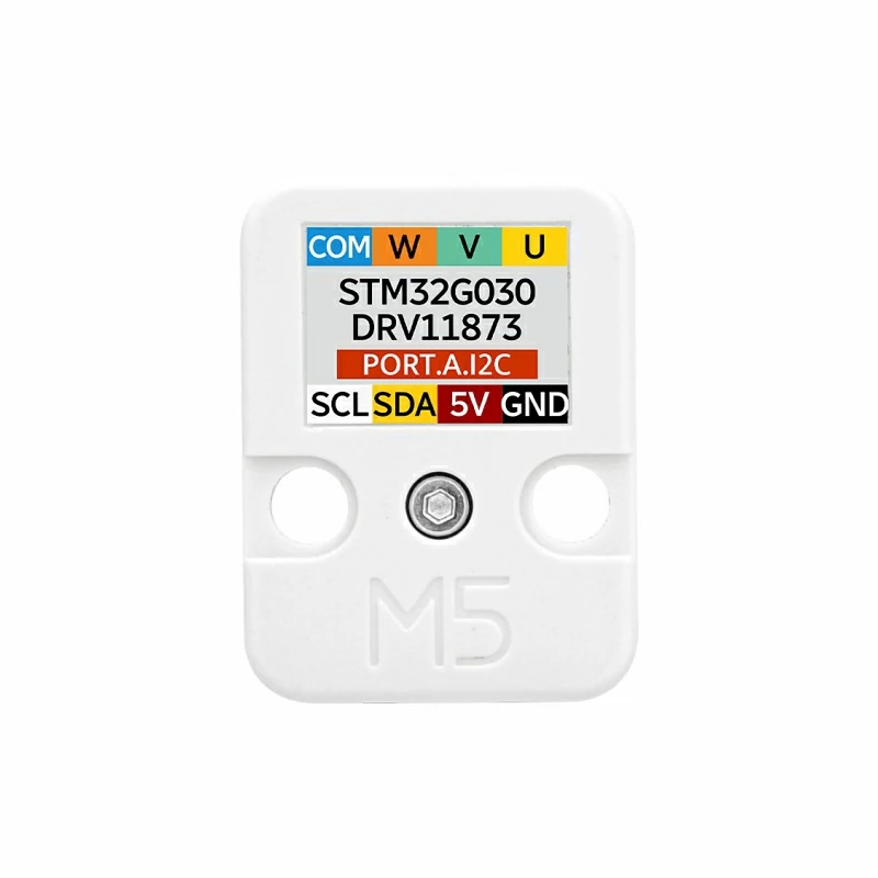 The Unit-BLDC Driver is a driving unit specifically designed for Brushless DC Motors (BLDC), utilizing an STM32 as the primary control chip. It enables precise control over the DRV11873PWPR motor drive chip through I2C communication, facilitating PWM speed control adjustment, monitoring, and direction switching functionalities. This drive chip features a simplified control interface and integrated stall protection, ensuring efficient and low-noise operation of three-phase small brushless DC motors. The onboard STM32 upgrade interface facilitates firmware updates and functional expansions, making it suitable for applications in industrial automation, smart robotics, precision instruments, and other fields.
