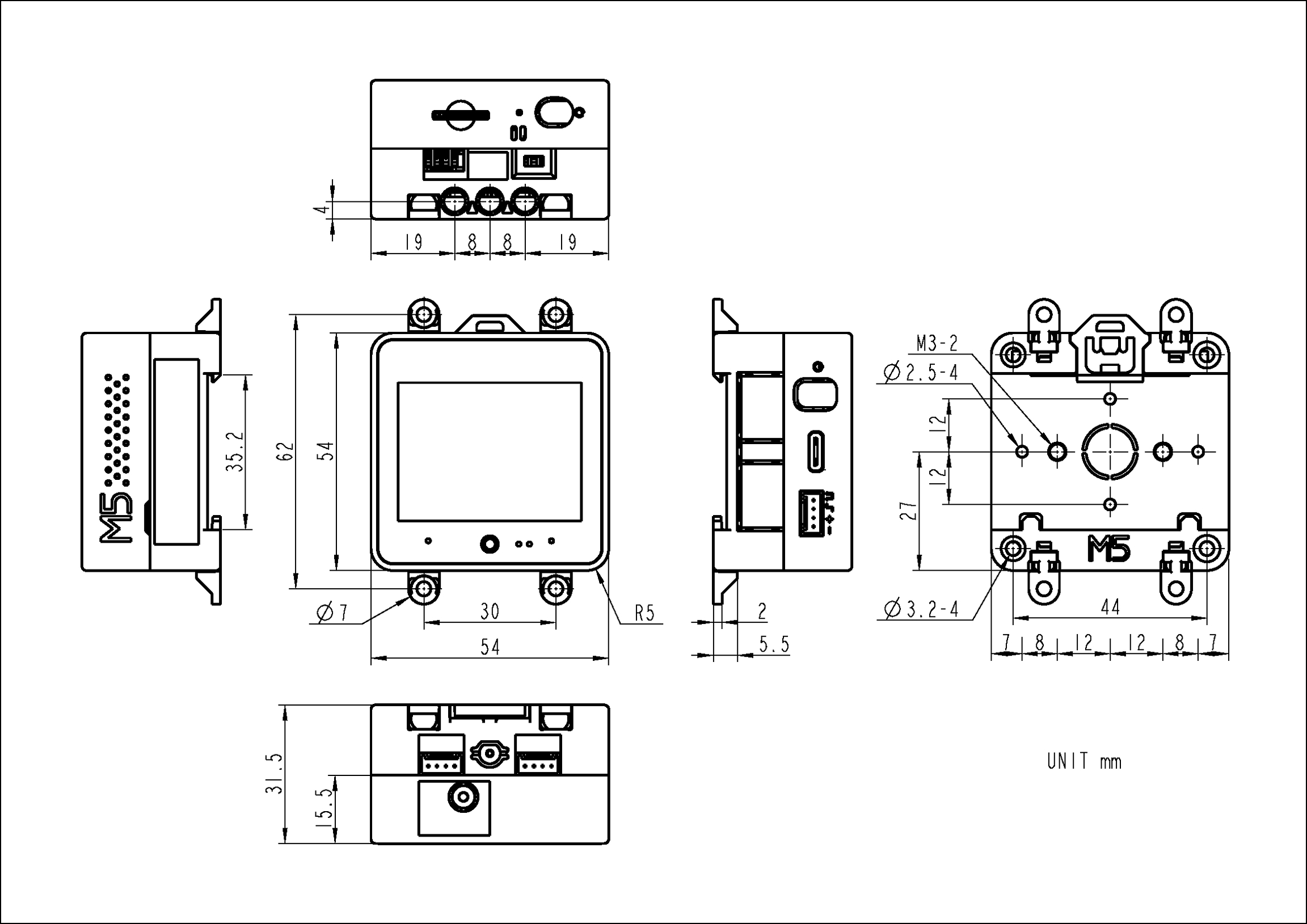 Full Assembly Kit(CoreS3+DinBase):54 * 54 * 31.5mm CoreS3:54 * 54 * 15.5mm