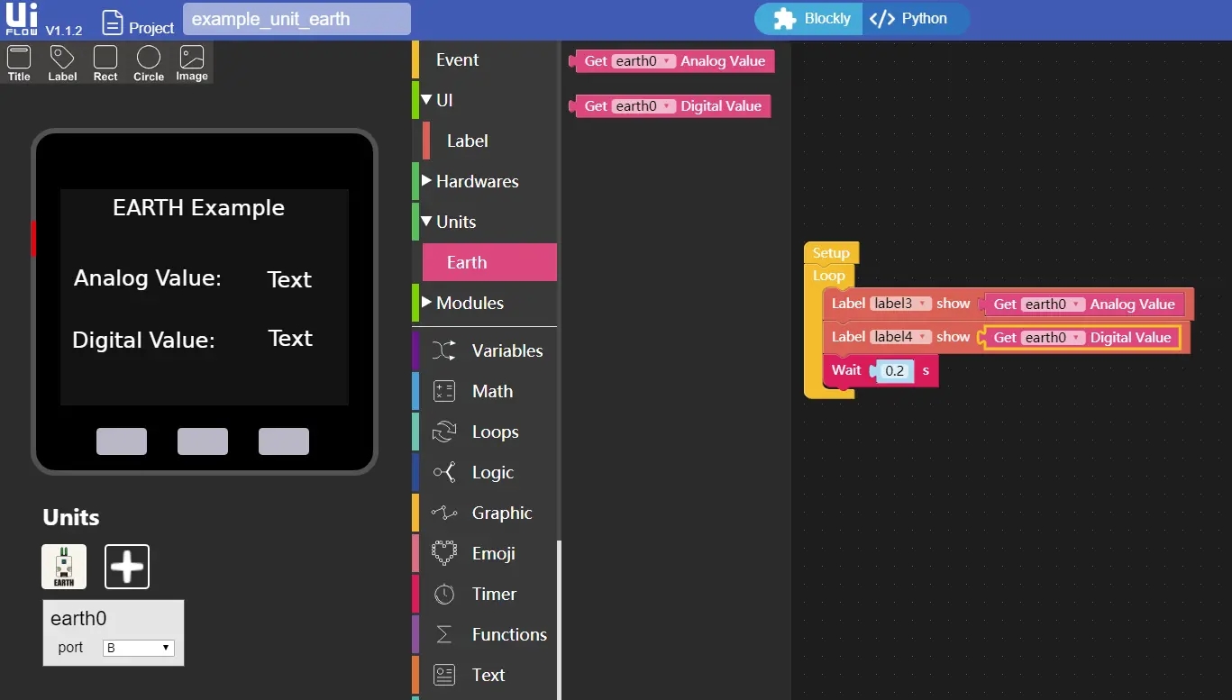 UIFlow1.0 EARTH Unit instructionsUIFlow1.0 EARTH Unit instructionsHow to use Unit EARTH and related API instructions in the UIFlow1.0 graphical programming platform