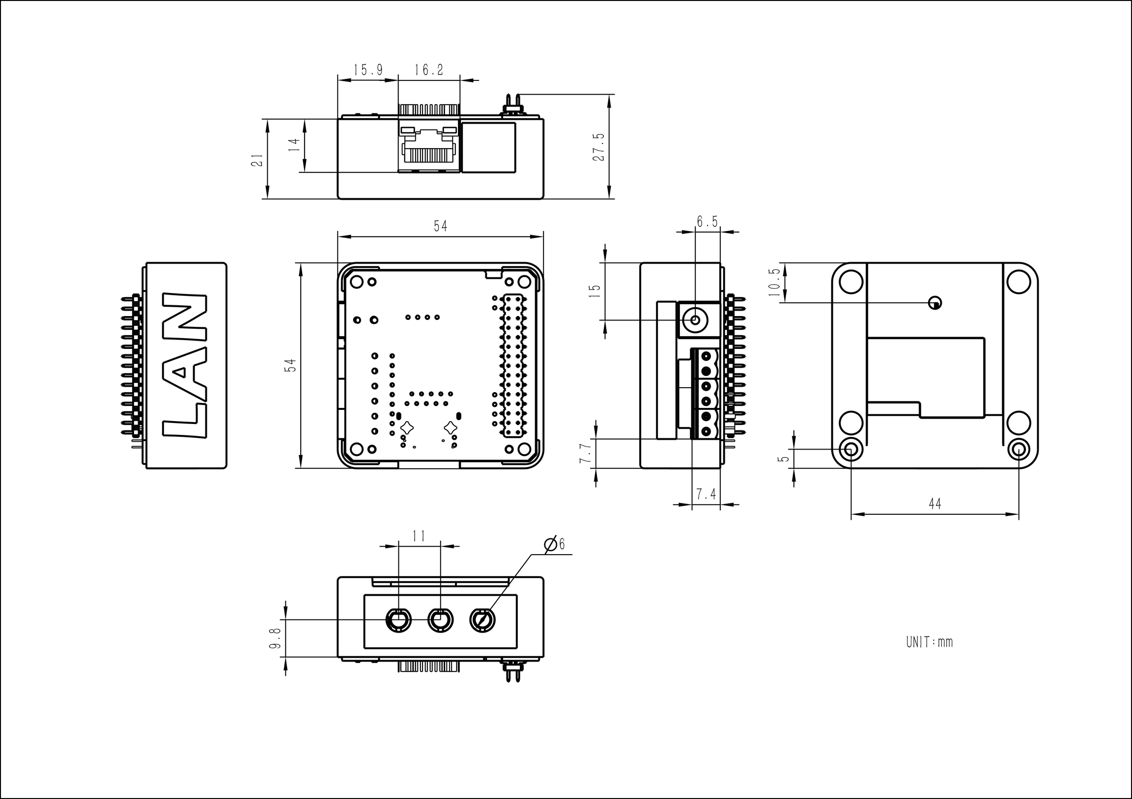 LAN PoE BASE V12 is an Ethernet control module that integrates PoE (Power Over Ethernet) function. Adopt W5500 full hardware TCP/IP embedded Ethernet controller (SPI communication interface) scheme, support multiple communication protocols (TCP, UDP, IPv4, ICMP, ARP, IGMP and PPPoE, etc.) Network packet processing.