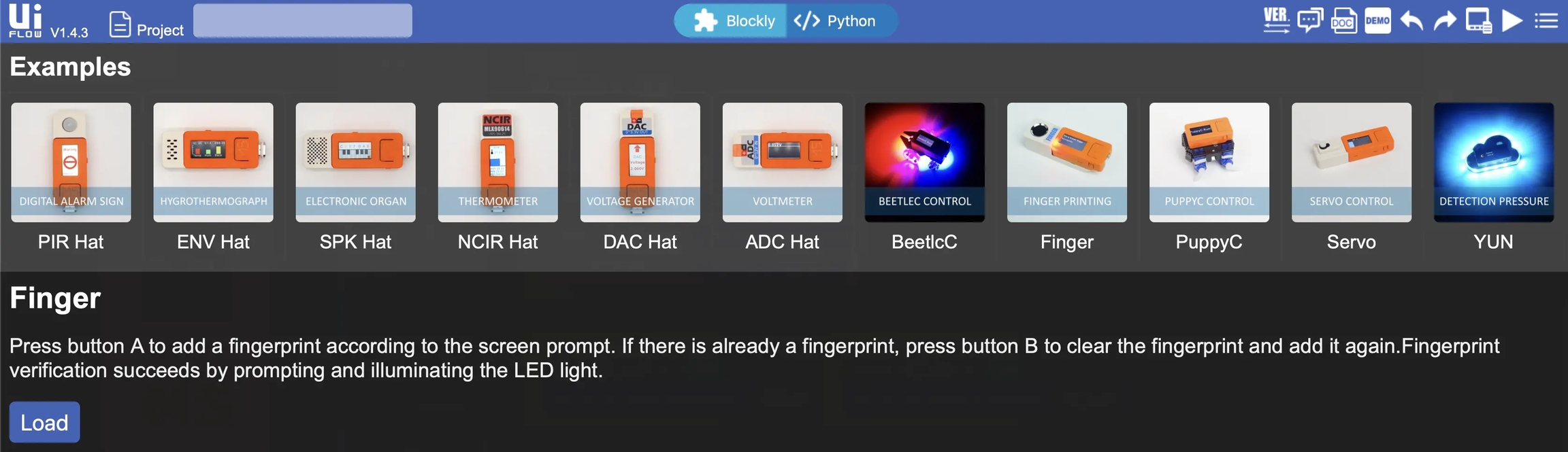 EasyLoader is a simple and fast program burner. Every product page in EasyLoader provides a product-related case program. It can be burned to the M5 device through simple steps, and a series of function verification can be performed.