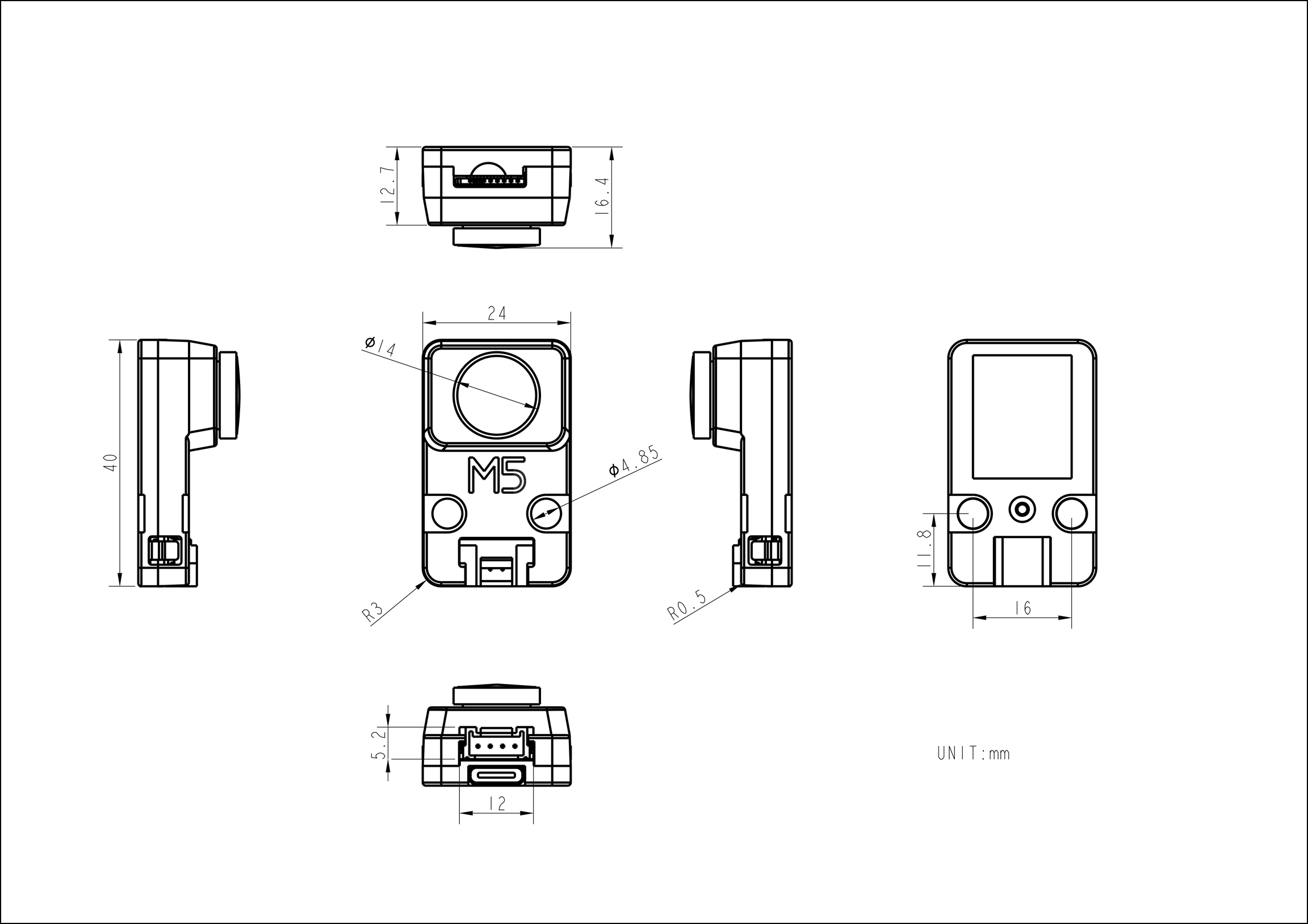 UNIT-V M12 is an AI camera unit with M12 lens specifications and K210 processor, which integrates dual-core 64-bit RISC-V CPU and neural network processor edge computing system-on-chip, it equippes with M12 optical lens OV7740 wide-angle camera module (can replace other M12 lenses), the body is equipped with two programmable buttons and TF card expansion slot. Its bottom provides an HY2.0-4P interface and a TYPE-C interface for data connection to the controller. The UNIT-V M12 AI camera is very small, it is suitable for embedding in various devices, with machine vision processing capabilities, supporting a variety of image recognition capabilities (such as real-time acquisition of the size and coordinates of the detected target Real-time acquisition of the type of detected target), and it can perform convolutional neural network calculations, which is a low-threshold machine vision embedded solution.
