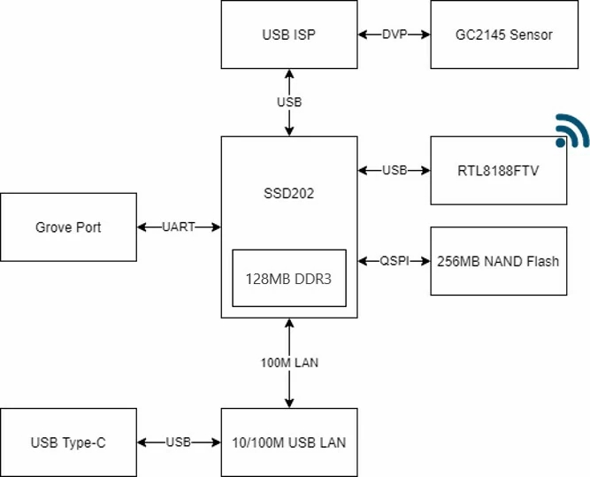 UnitV2 is a high-efficiency AI recognition module launched by M5Stack, using Sigmstar SSD202D (integrated dual-core Cortex-A7 1.2GHz processor) control core, integrated 128MB-DDR3 memory, 512MB NAND Flash, and 1080P camera. With embedded Linux operating system and rich software and hardware resources and development tools integrated, UnitV2 is committed to bringing users a simple and efficient AI development experience out of the box.
