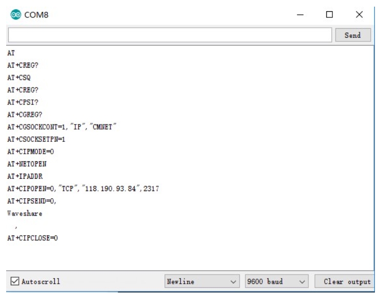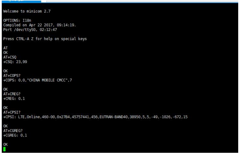 sudo apt-get install minicom3. Execute minicom -D /dev/ttyS0 (ttyS0 is the serial port of Raspberry Pi 3B/3B+/4B). The default baud rate is 115200. Raspberry Pi 5/2B/zero, the user serial device number is ttyAMA0, and the Raspberry Pi 3B/3B+/4B serial device number is ttyS0. 4. Take the AT synchronization test as an example, and send relevant commands, as shown in the following figure: * minicom can enter setting mode by pressing Ctrl+A, then Z, and select X to exit. 5. Raspberry Pi 5 configures the ttyS0 serial port: