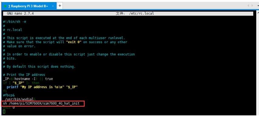 chmod 777 sim7600_4G_hat_initSet the boot initialization script, and run the command: