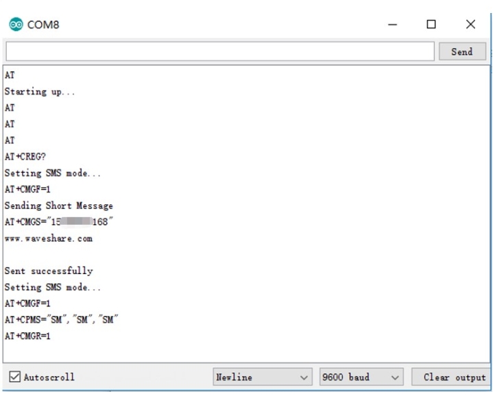 The SIM7600X_4G_HAT is connected to the Jetson Nano and the main antenna. The demo uses the software to turn it on and off, and there is no need to press the button to turn it on and off. This demo will automatically shut down the software after sending the information www.waveshare.com to the specified number. When users use SMS routines, they must first use tools such as vim to change the number in line 10 of the SMS.py file, replace * with a number, and keep the ' symbol. Enter the Jetson Nano/SMS directory and execute the command: