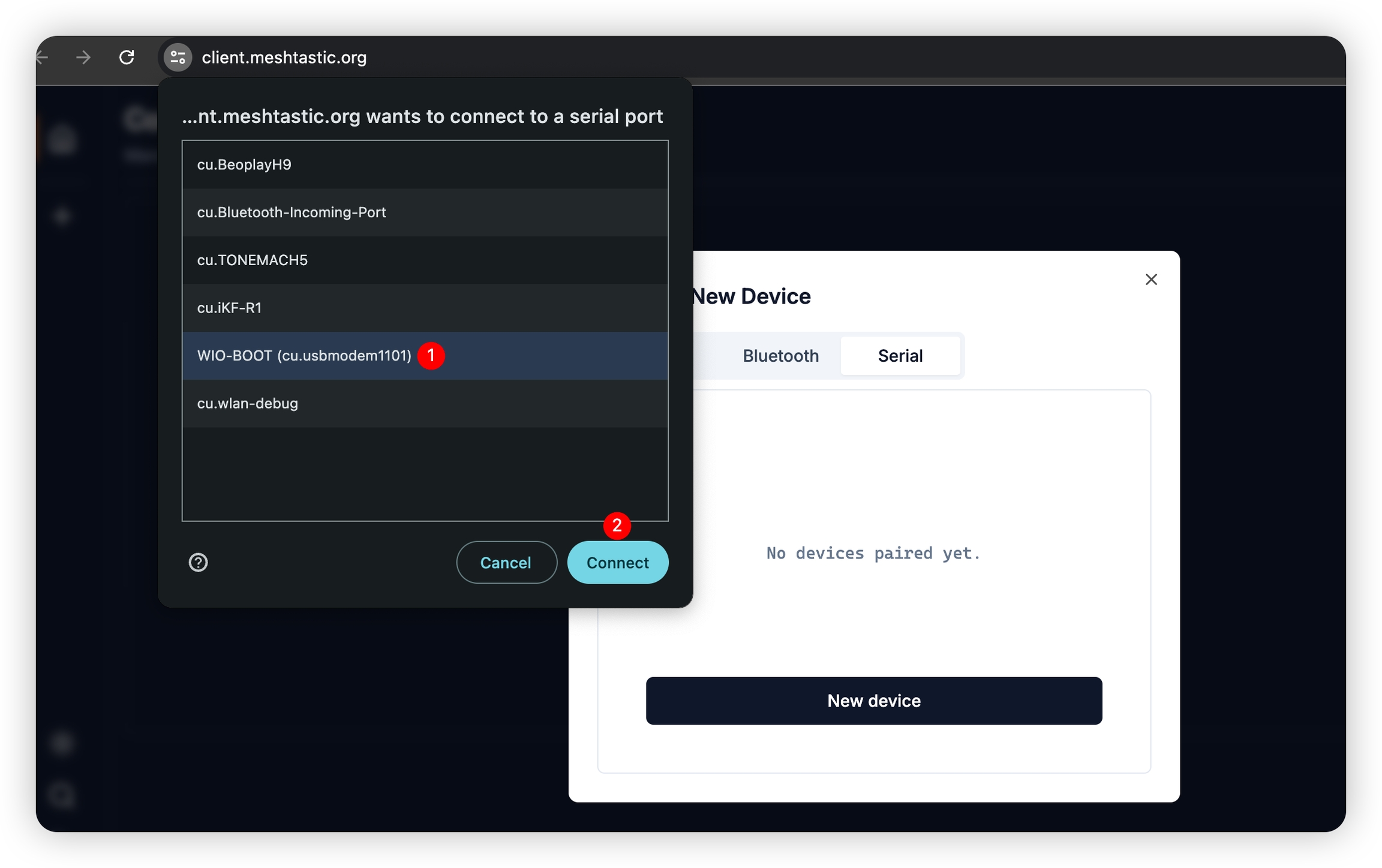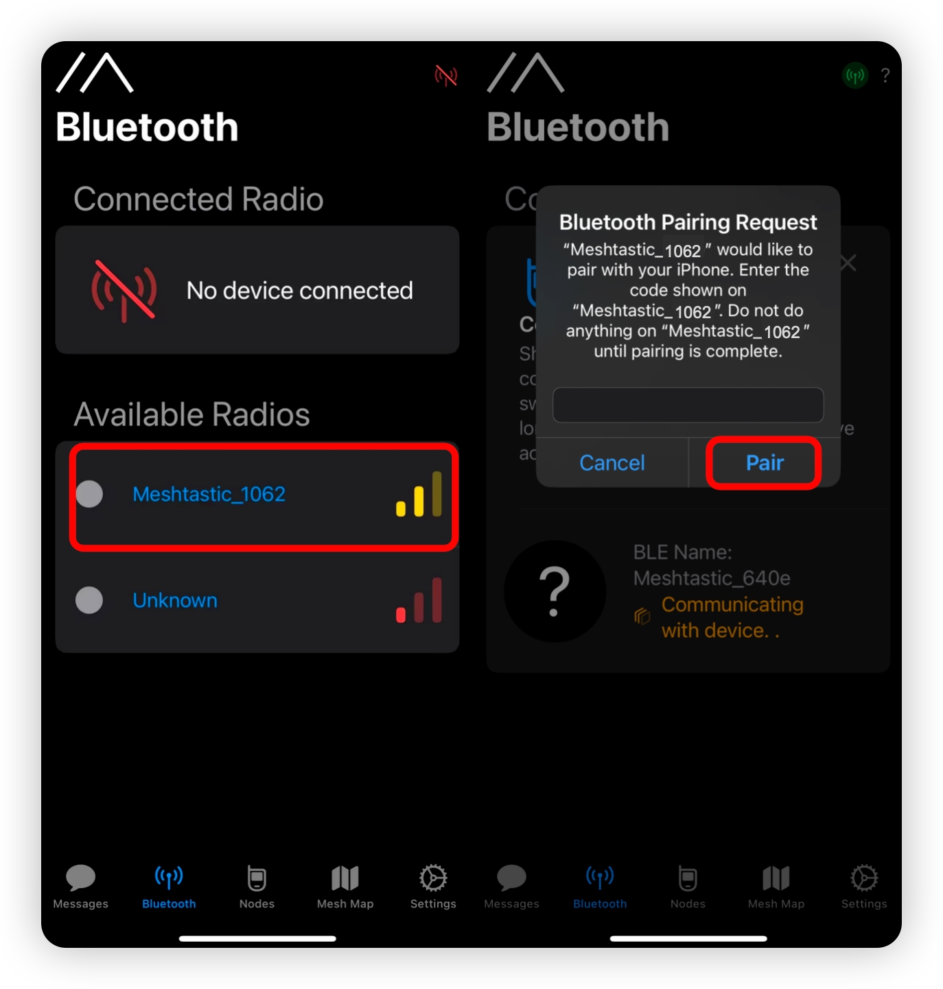 MeshtasticApp.Select the target device on the Bluetooth panel.