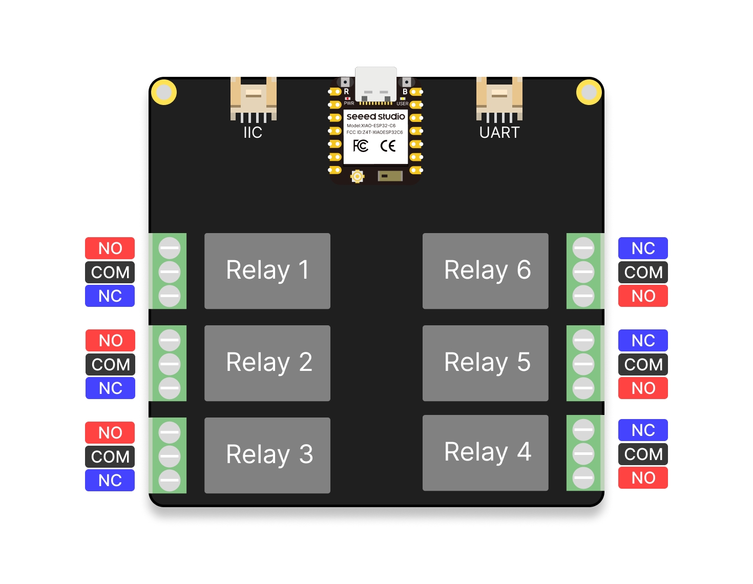 In addition to its six relay channels, this module also features two extra Grove expansion interfaces, allowing users to integrate additional sensors or actuators for more advanced automation scenarios.