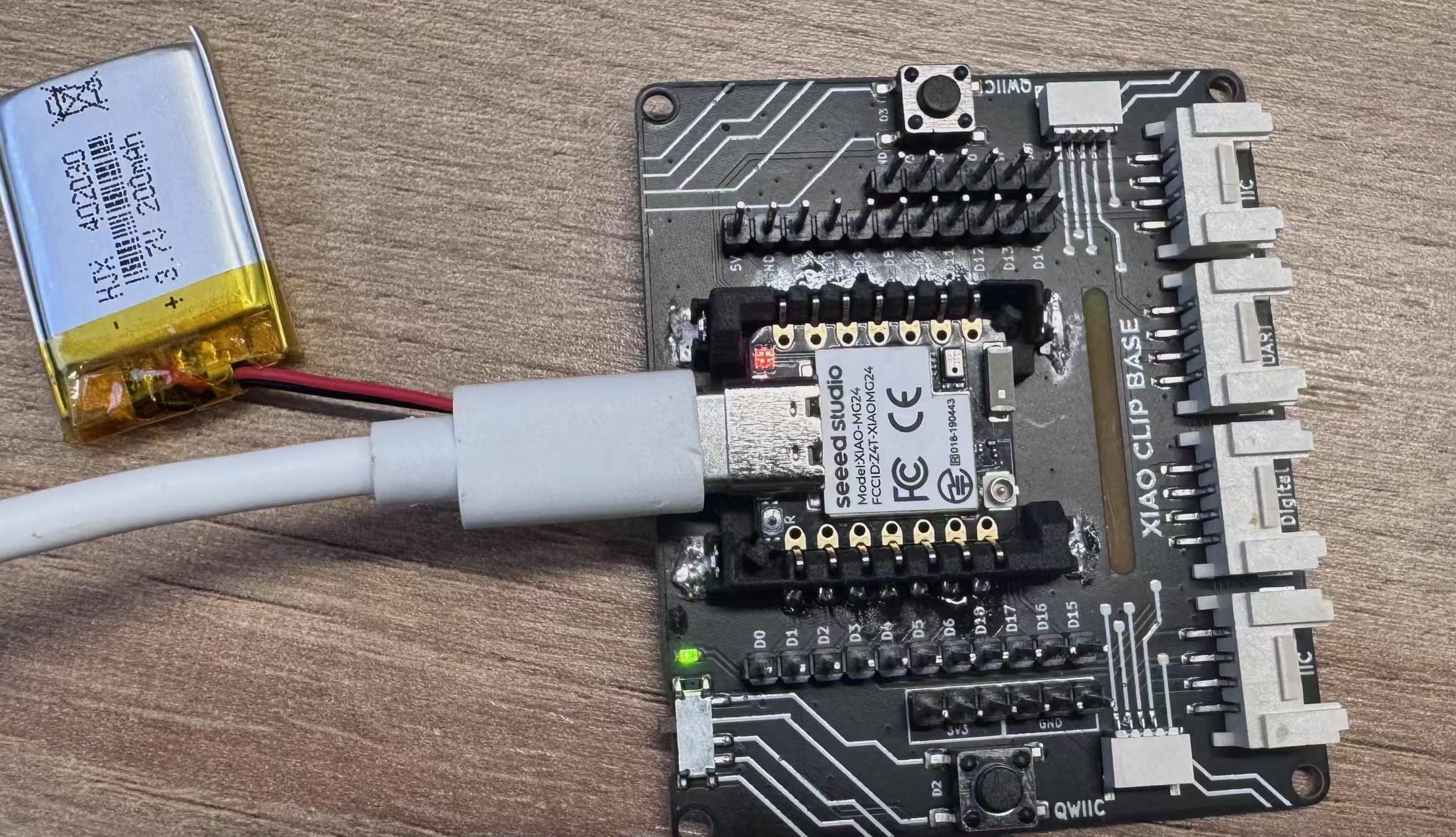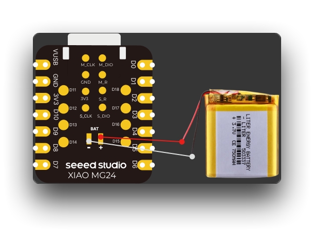 The XIAO MG24 has a built-in power management chip that allows the XIAO MG24 to be powered independently by using a battery or to charge the battery through the XIAO MG24's USB port.