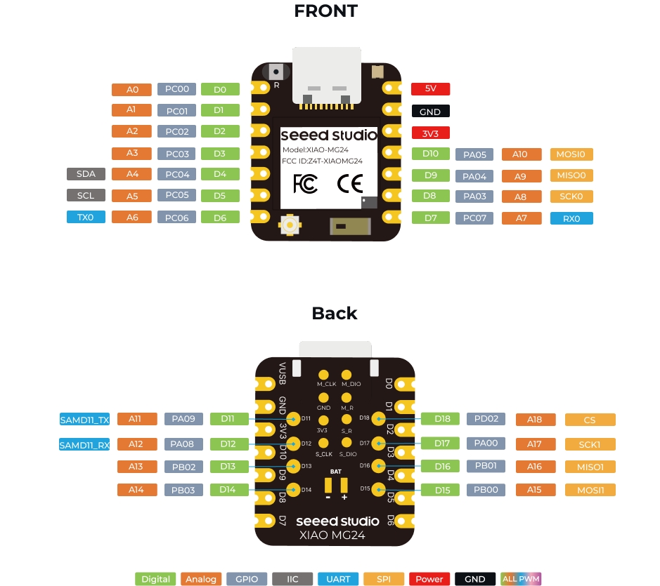 XIAO MG24/ XIAO MG24(Sense) Pin List