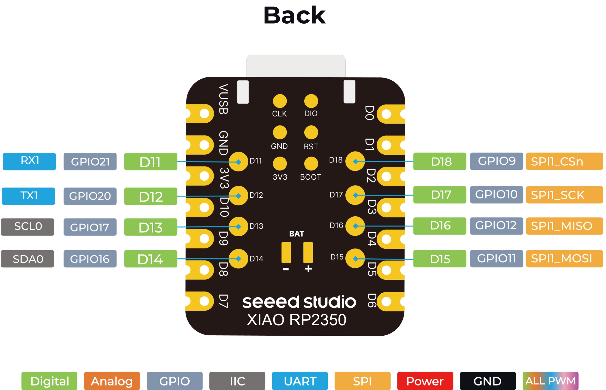 Expanded 8 New IOs: Compared to previous XIAO MCUs, the addition of 8 IO pins on the back supports more complex applications.