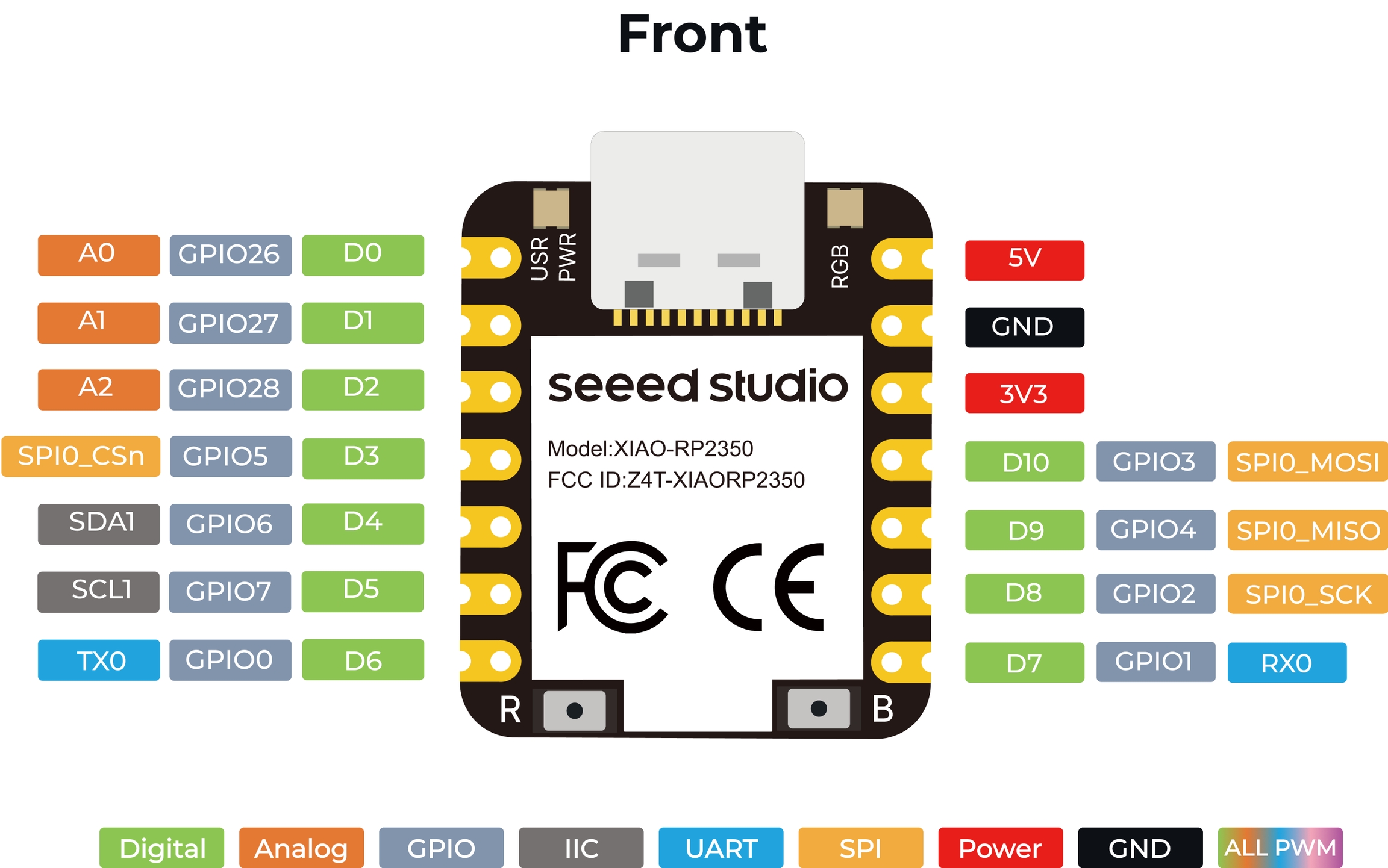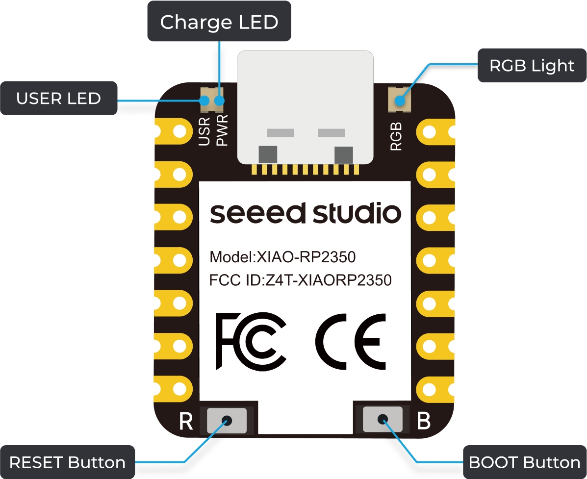 Rich Onboard Resources: Integrates an RGB LED, 2MB Flash, 520kB SRAM, and 19 multifunction GPIOs(Analog, Digital, I²C, UART, SPI, PWM).